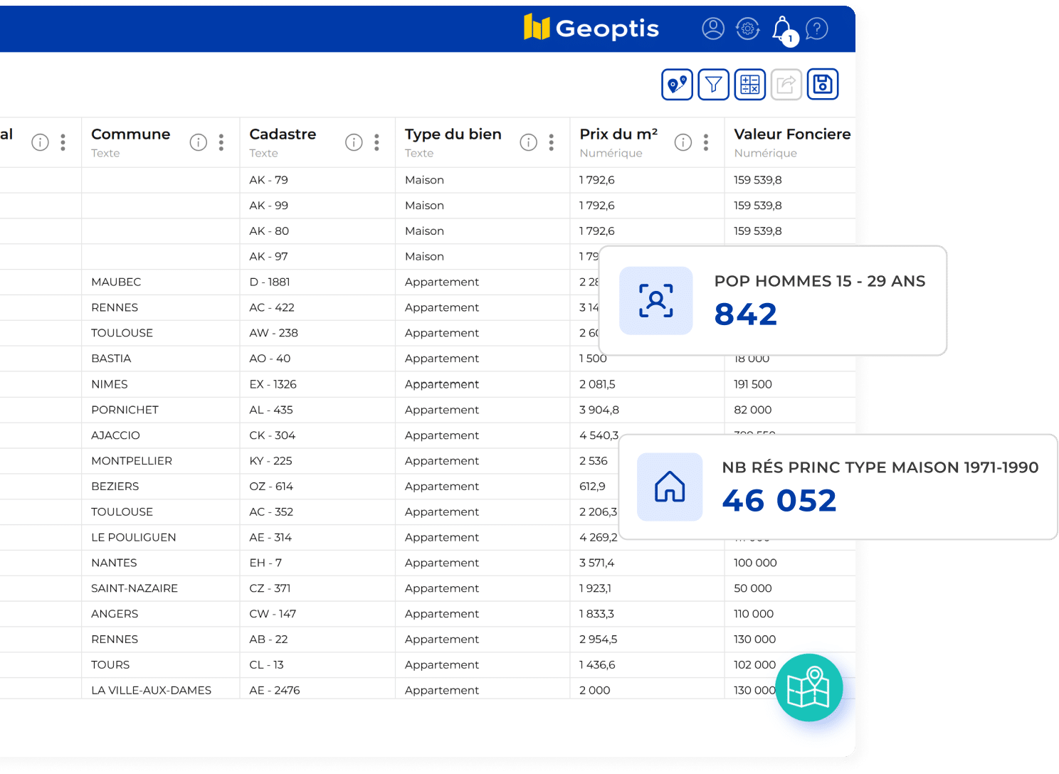Accédez à un écosystème unique de données territoriales et croisez-les avec vos données.